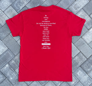 Red Unisex T-Shirt- “ I Am The Turning Point “ The back states the verse Deuteronomy 31.6 Ladies : size down one .