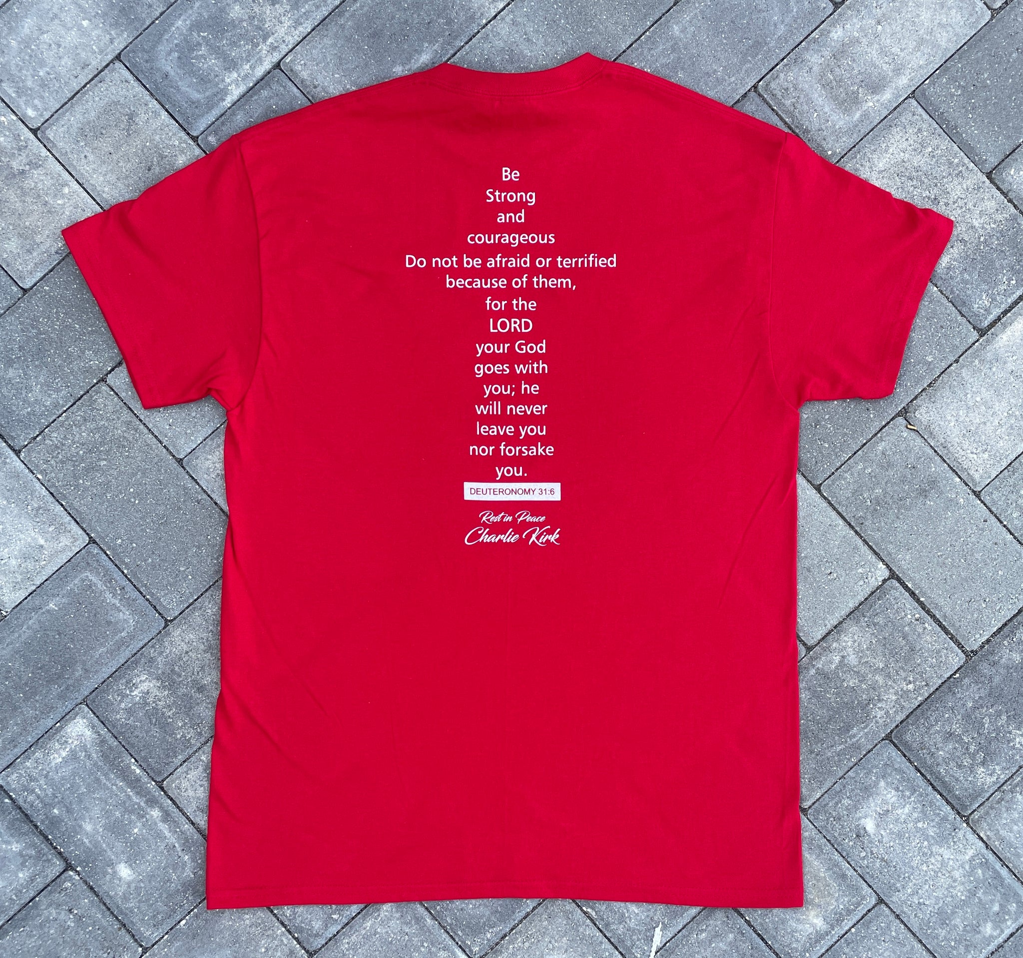 Exactly what Charlie would say - “ I am the turning point “ back side says words in a shape of the cross, Deuteronomy 31.6